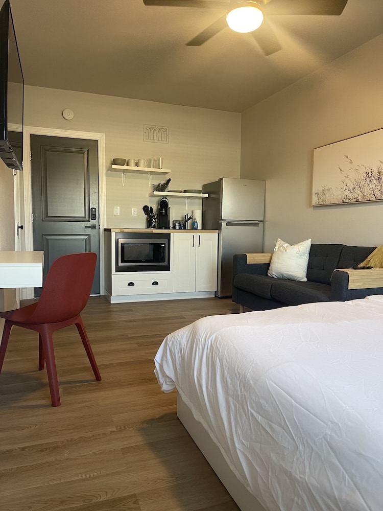 Make yourself comfortable in this apartment, featuring a kitchenette with a full-sized refrigerator/freezer and a stovetop. A 46-inch Smart television with digital programming provides entertainment, while complimentary wireless internet access keeps you connected. Conveniences include a microwave and a coffee/tea maker.